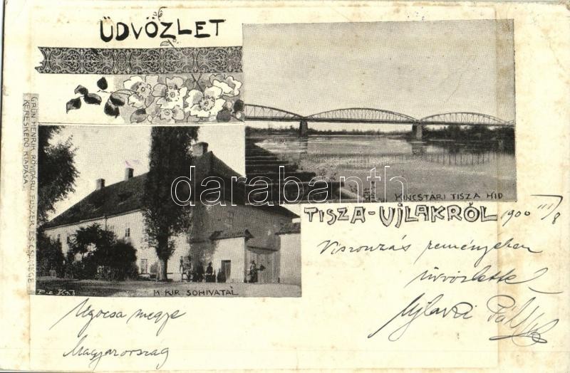1900 Tiszaújlak, Vulok, Vilok, Vylok; M. kir. sóhivatal, Kincstári Tisza híd. Grün Henrik kiadása / salt mine office, Tisa bridge. Art Nouveau, floral (EK)