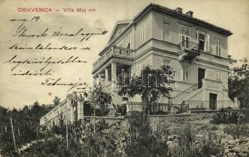 1911 Crikvenica, Cirkvenica; Villa Moj mir / nyaraló / villa https://www.darabanth.com/de/358-Fernauktion/358.0/Ansichtskarten/Kroatien~1000008/1911-Crikvenica-Cirkvenica-Villa-Moj-mir-nyaralo-villa~II2060375