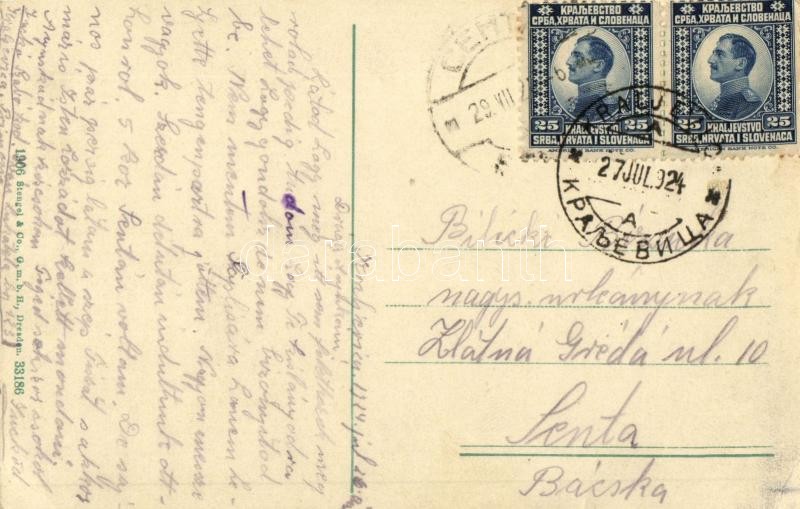 Beschreibung: 1924 Kraljevica, Portoré; beach, bathing people, seaside + kétnyelvű bélyegző / bilingual cancellation (EK)