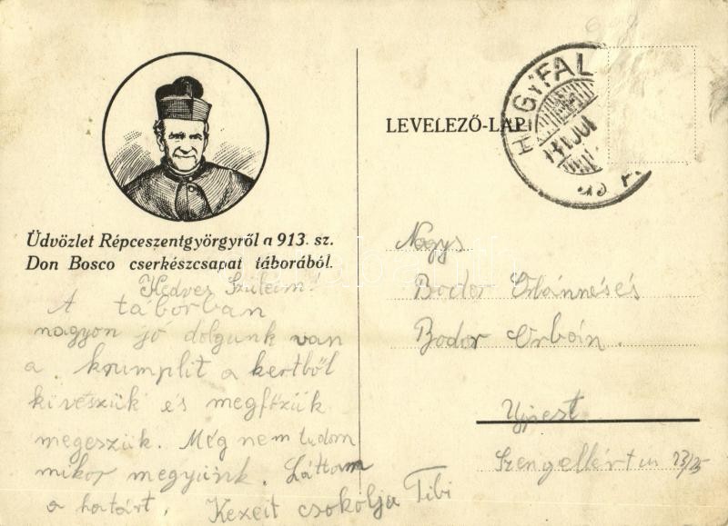 Üdvözlet Répceszentgyörgyről a 913. sz. Don Bosco cserkészcsapat tábor... https://www.darabanth.com/de/358-Fernauktion/358.0/Ansichtskarten/Pfadfinder~1000058/Udvozlet-Repceszentgyorgyrol-a-913-sz-Don-Bosco-cserkeszcsapat-taborabol-Legy-resen-~II2058132