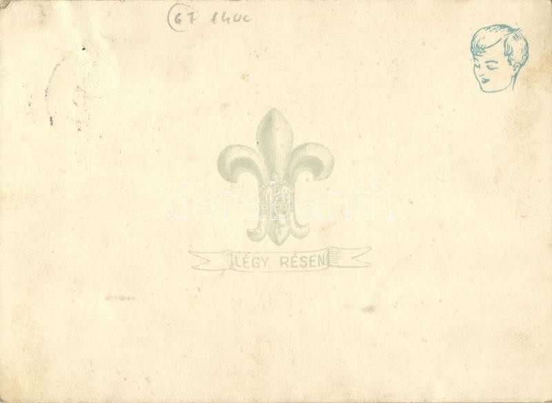 Beschreibung: Üdvözlet Répceszentgyörgyről a 913. sz. Don Bosco cserkészcsapat táborából. Légy résen! / Hungarian scout camp postcard
