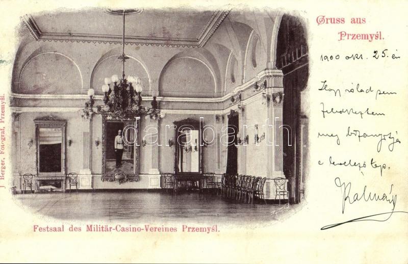 1900 Przemysl, Festsaal des Militär-Casino-Vereines / Ballroom of the K.u.K. Military Casino Club, interior with Franz Joseph's portrait. J. Berger Fotograf (fl)