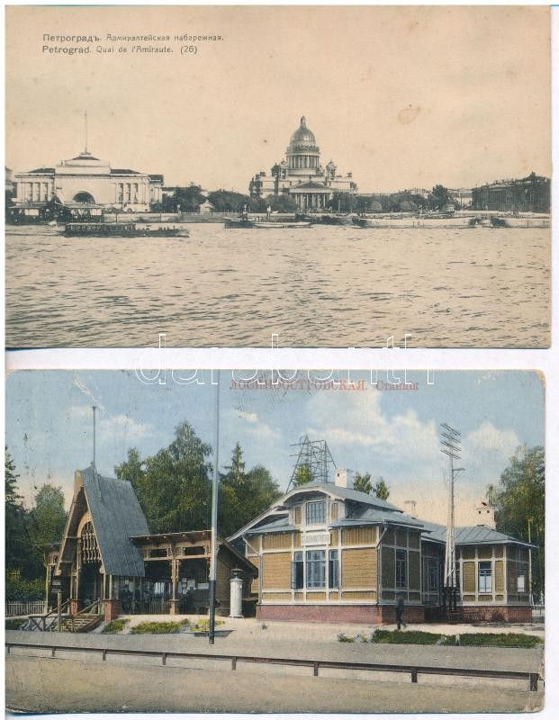 Beschreibung: 2 db RÉGI orosz városképes lap / 2 pre-1945 Russian town-view postcards: Losinoostrovskaya railway station (Moscow), Saint Petersburg (Petrograd)