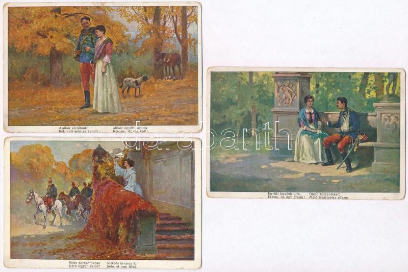 Beschreibung: 3 db RÉGI huszáros művész motívumlap / 2 pre-1945 Hungarian hussar art motive postcards