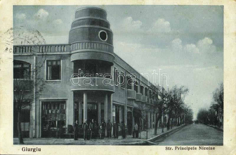 1934 Giurgiu, Gyurgyevó; Str. Principele Nicolae / street view (EK) https://www.darabanth.com/de/358-Fernauktion/358.0/Ansichtskarten/Rumanien~1000045/1934-Giurgiu-Gyurgyevo-Str-Principele-Nicolae-street-view-EK~II2055371