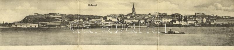 Beschreibung: Belgrade, Belgrád; 3-tiled folding panoramacard (torn at fold)