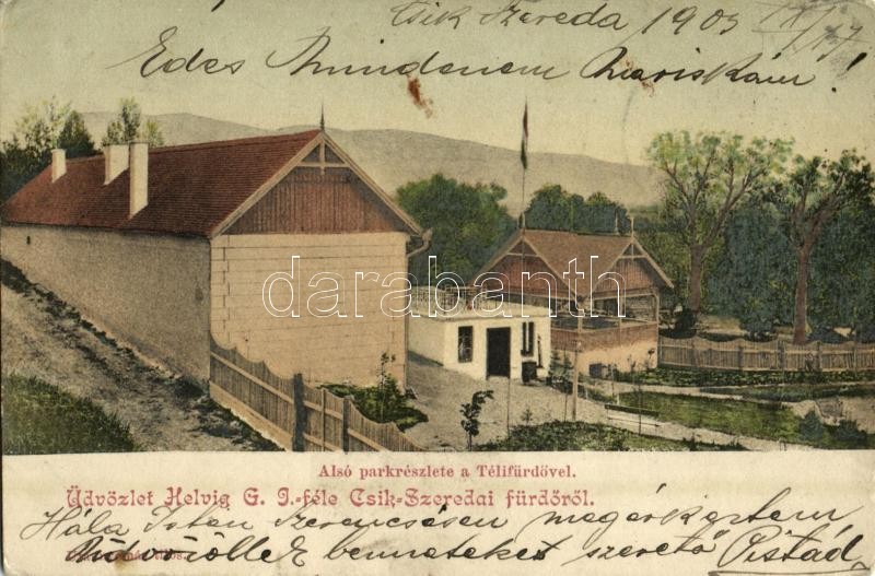 1903 Csíkszereda, Miercurea Ciuc; Helvig G. J. féle csíkszeredai fürdő... https://www.darabanth.com/de/358-Fernauktion/358.0/Ansichtskarten/Siebenburgen~1000005/1903-Csikszereda-Miercurea-Ciuc-Helvig-G-J-fele-csikszeredai-furdo-also-park-reszlete-a-~II2058865