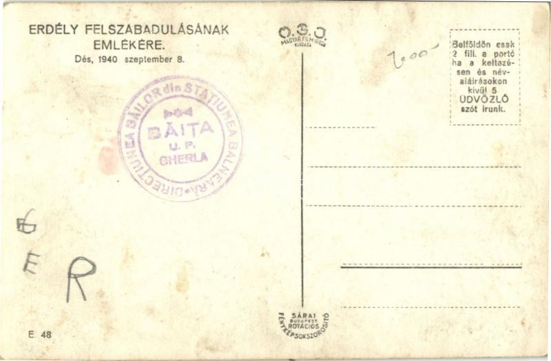 1940 Dés, Dej; bevonulás, díszkapu / entry of the Hungarian troops, de... https://www.darabanth.com/de/358-Fernauktion/358.0/Ansichtskarten/Siebenburgen~1000005/1940-Des-Dej-bevonulas-diszkapu-entry-of-the-Hungarian-troops-decorated-gate-So-Stpl~II2056224