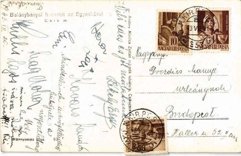 Balánbánya, Balan; Balánbányai havasok az Egyeskővel (Csík megye). Andory Aladics Zoltán mérnök felvétele / Piatra Singuratica / mountains + 1943 M. kir. posta 353. bélyegző