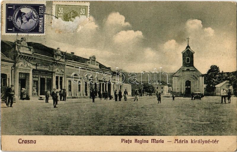 Kraszna, Crasna; Piata Regina Maria / Mária királyné tér, F. Reznovits... https://www.darabanth.com/de/358-Fernauktion/358.0/Ansichtskarten/Siebenburgen~1000005/Kraszna-Crasna-Piata-Regina-Maria-Maria-kiralyne-ter-F-Reznovits-uzlete-Romai-katolikus~II1990576