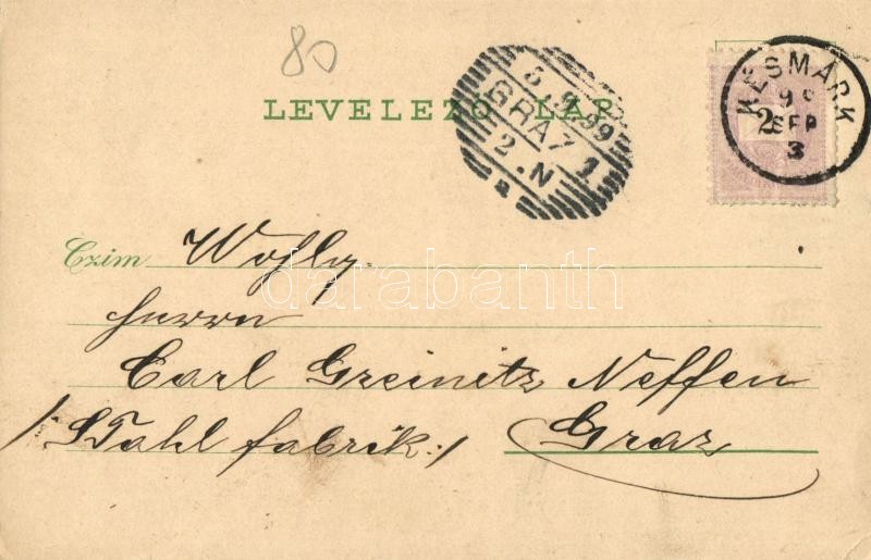1899 Késmárk, Kezmarok; Rathaus u. obere Schlossgasse, Késmárk mit hoher Tatra, Hauptplatz, Neues Lycealgebäude / Városháza, utcakép, Magas Tátra, Fő tér, új gimnázium / town hall, street view, general view with High Tatras, main square, high school. Kunstanstalt Karl Schwidernoch No. 1937. Art Nouveau, floral, litho (EK)