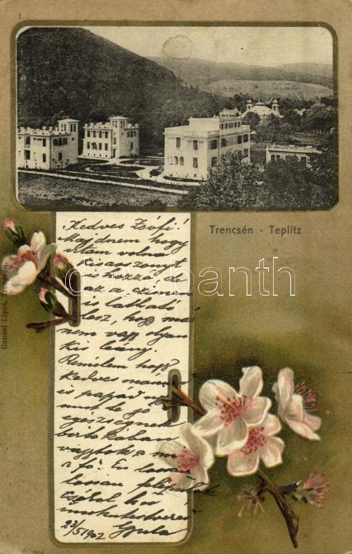 Beschreibung: 1902 Trencsénteplic, Trencianske Teplice; nyaralók. Gansel Lipót kiadása. K. 206. Szecessziós virágos litho keret / villas. Art Nouveau, floral, litho frame (fl)