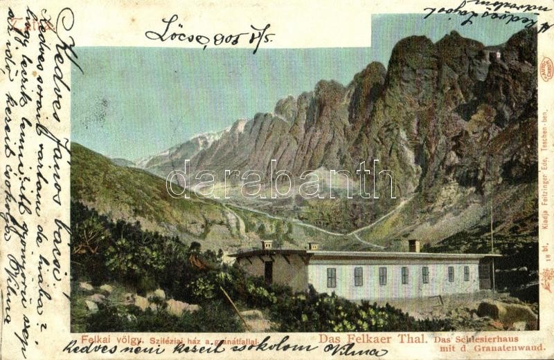 1905 Tátra, Vysoké Tatry; Felkai völgy, Sziléziai ház, Gránátfal. Feit... https://www.darabanth.com/de/358-Fernauktion/358.0/Ansichtskarten/Slowakei~1000006/1905-Tatra-Vysoke-Tatry-Felkai-volgy-Szileziai-haz-Granatfal-Feitzinger-Ede-18-bt-Sli~II2059126