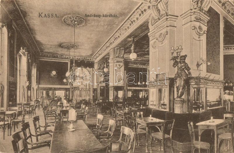 1908 Kassa, Kosice; Andrássy kávéház, belső. Kiadja Divald K. fia fény... https://www.darabanth.com/de/358-Fernauktion/358.0/Ansichtskarten/Slowakei~1000006/1908-Kassa-Kosice-Andrassy-kavehaz-belso-Kiadja-Divald-K-fia-fenynomdaja-60-cafe-inte~II1980024