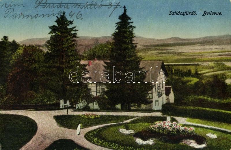1917 Szliácsfürdő, Kúpele Sliac; Bellevue / hotel villa https://www.darabanth.com/de/358-Fernauktion/358.0/Ansichtskarten/Slowakei~1000006/1917-Szliacsfurdo-Kupele-Sliac-Bellevue-hotel-villa~II2059135