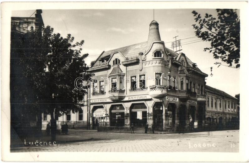 Beschreibung: 1933 Losonc, Lucenec; Astoria szalon és kávéház, E. Schulter üzlete / café and salon, shops, photo (EB)