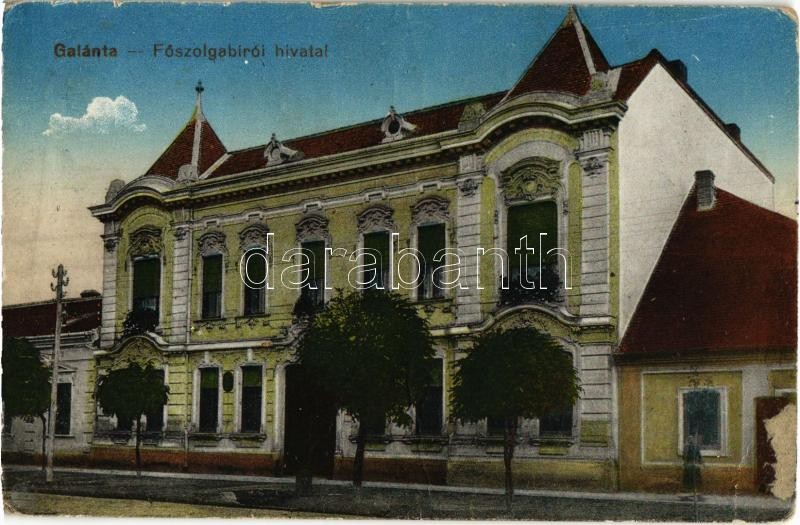 Galánta, Főszolgabírói hivatal / judge's office, court (fa) https://www.darabanth.com/de/358-Fernauktion/358.0/Ansichtskarten/Slowakei~1000006/Galanta-Foszolgabiroi-hivatal-judges-office-court-fa~II1969527