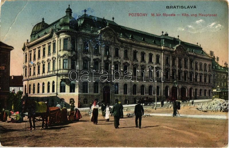 Pozsony, Pressburg, Bratislava; M. kir. főposta, piaci árusok, villamo... https://www.darabanth.com/de/358-Fernauktion/358.0/Ansichtskarten/Slowakei~1000006/Pozsony-Pressburg-Bratislava-M-kir-foposta-piaci-arusok-villamos-Kiadja-Raab-Mihaly-pos~II1969220