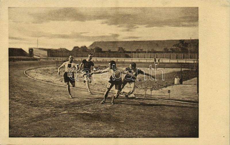 1911 FTC versenye, 4x100 méteres staféta utolsó váltásai; Radóczy, Jankovich, Petersen, Hermann; M.A.C. győzelem. 10. a. sz. Klasszikus pillanatok vállalat, Révész és Bíró műterem / Running race