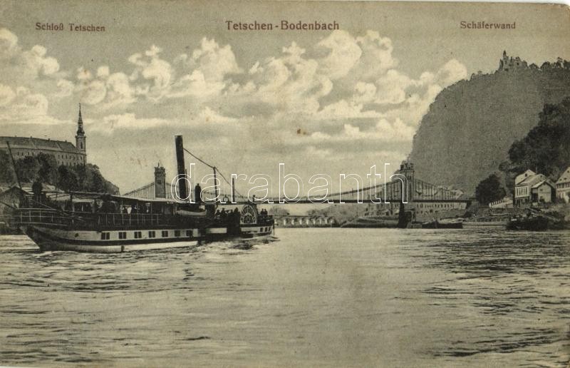 Beschreibung: Decín, Tetschen-Bodenbach; Schloss Tetschen, Schälerwand / castle, steamship (EK)