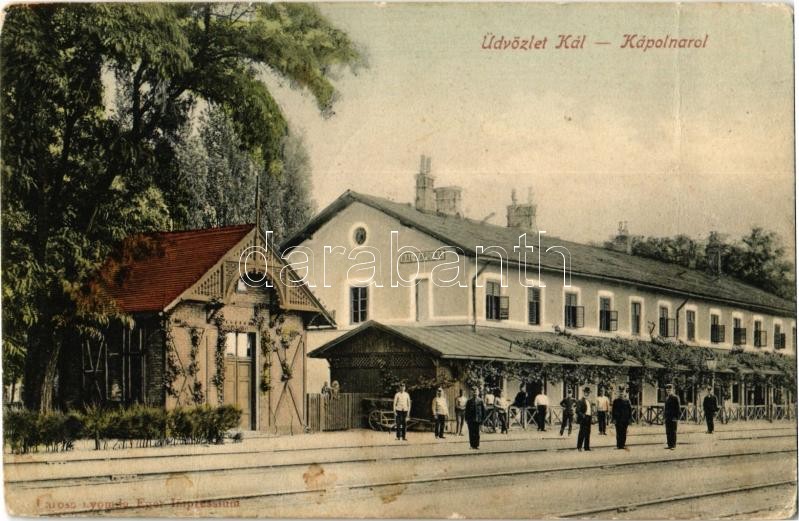 1905 Kál-Kápolna, Vasútállomás, vasutasok. Baross nyomda (fa) https://www.darabanth.com/de/358-Fernauktion/358.0/Ansichtskarten/Ungarn~1000004/1905-Kal-Kapolna-Vasutallomas-vasutasok-Baross-nyomda-fa~II1988667