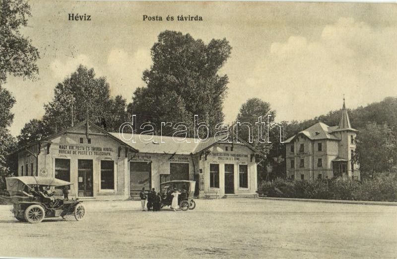 1912 Hévíz, posta és távirda, automobilok, Fürdő igazgatósági iroda, S... https://www.darabanth.com/de/358-Fernauktion/358.0/Ansichtskarten/Ungarn~1000004/1912-Heviz-posta-es-tavirda-automobilok-Furdo-igazgatosagi-iroda-Szuts-Istvan-borbely~II2057034