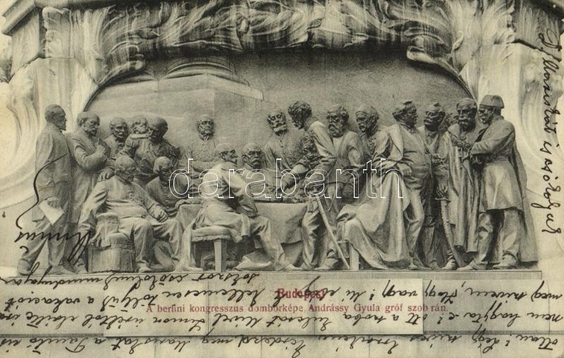 Beschreibung: 1915 Budapest V. Gróf Andrássy Gyula szobor, a berlini kongresszus domborképe