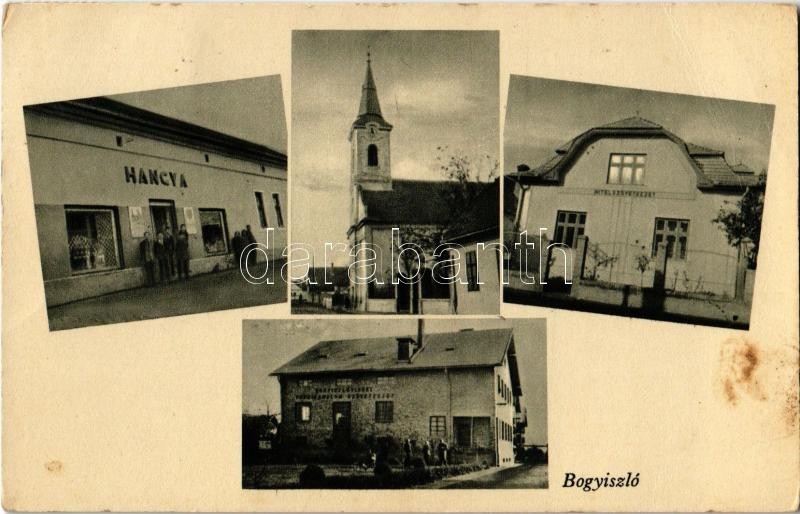 Beschreibung: 1951 Bogyiszló, Hangya Szövetkezet üzlete, Hitelszövetkezet, Református templom (EB)