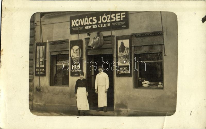 Győr, Kovács József hentesüzlete és húscsarnoka. photo (fa) https://www.darabanth.com/de/358-Fernauktion/358.0/Ansichtskarten/Ungarn~1000004/Gyor-Kovacs-Jozsef-hentesuzlete-es-huscsarnoka-photo-fa~II2056294