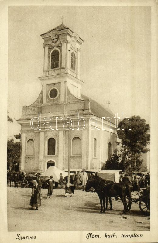 Szarvas, Római katolikus templom, piac. Nagy Sándor kiadása https://www.darabanth.com/de/358-Fernauktion/358.0/Ansichtskarten/Ungarn~1000004/Szarvas-Romai-katolikus-templom-piac-Nagy-Sandor-kiadasa~II2057806