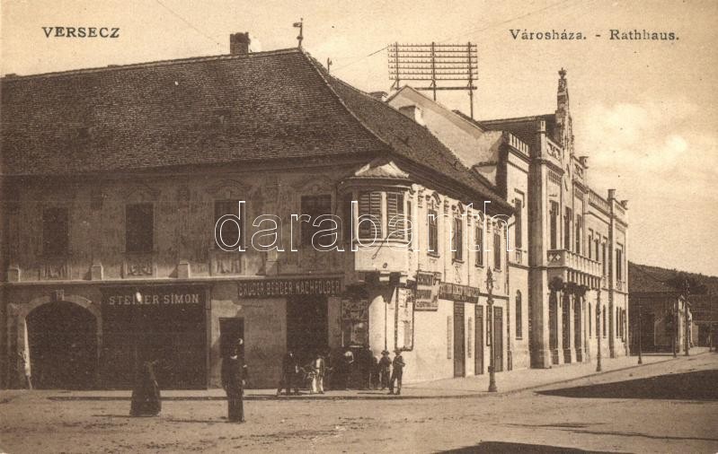 1906 Versec, Vrsac; Városháza, Steiner Simon és Berger Testvérek utóda... https://www.darabanth.com/de/358-Fernauktion/358.0/Ansichtskarten/Vojvodina~1000009/1906-Versec-Vrsac-Varoshaza-Steiner-Simon-es-Berger-Testverek-utoda-uzlete-Rathaus-Brud~II1918278