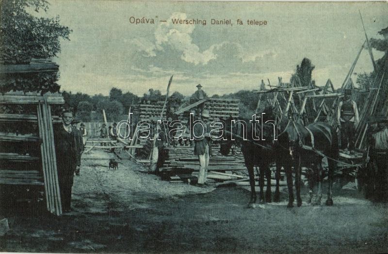 Ópáva, Oppova, Opovo; Werschig Dániel fatelepe és saját kiadása, lovas... https://www.darabanth.com/de/358-Fernauktion/358.0/Ansichtskarten/Vojvodina~1000009/Opava-Oppova-Opovo-Werschig-Daniel-fatelepe-es-sajat-kiadasa-lovaskocsi-lumber-yard-and-~II2058694