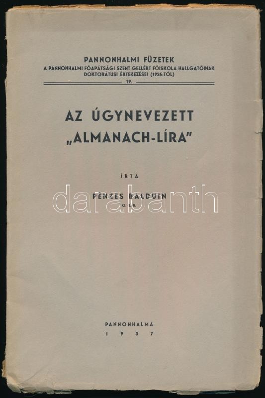 Pénzes Balduin: Az úgynevezett "almanach-líra". Pannohalma, ... https://www.darabanth.com/de/358-Fernauktion/358.0/Bucher/Bucher-Andere-kuriositaten~500056/Penzes-Balduin-Az-ugynevezett-almanach-lira-Pannohalma-1937-nyn-107p-Kiadoi-papirbori~II2058443