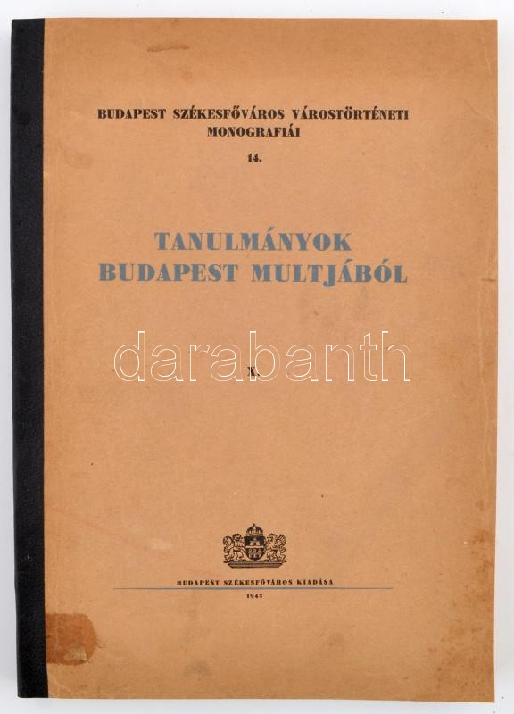 Tanulmányok Budapest múltjából. X. Szerk.: Dr. Némethy Károly, Dr. Budó Jusztin. Budapest Székesfőváros Várostörténeti Monografiái 14. Bp.,1943, Budapest Székesfehérváros Kiadása. Fekete-fehér fotókkal illusztrált. Félvászon-kötésben.