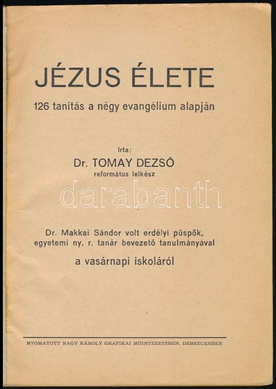 Dr. Tomay DezsÅ‘: Jézus élete 126 tanÃtás négy evangélium alapján. Dr. ... https://www.darabanth.com/de/358-Fernauktion/358.0/Bucher/Bucher-Religion~500052/Dr-Tomay-Dezso-Jezus-elete-126-tanitas-negy-evangelium-alapjan-Dr-Makkai-Sandor-volt-er~II2001759