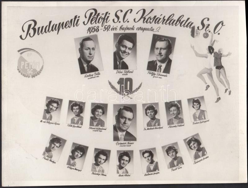 1959 Budapesti Petőfi S. C. Kosárlabda Sz. O., 1958-1959. évi bajnok c... https://www.darabanth.com/de/358-Fernauktion/358.0/Fotografie/Foto~500021/1959-Budapesti-Petofi-S-C-Kosarlabda-Sz-O-1958-1959-evi-bajnok-csapata-kistablo-17-neves~II893370