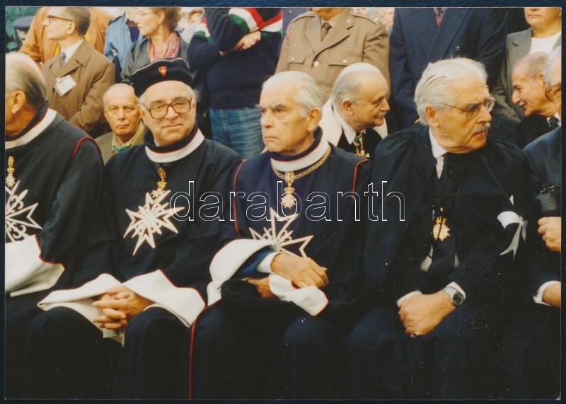 1993 Horthy Miklós újratemetése: A Szuverén Máltai lovagrend magyar tagjai : O'sváth György Szentkereszty János, Kállay Kristóf, Vermes László. Feliratozott, meg nem jelent fotó. 9x12 cm