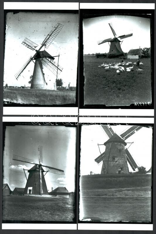 Szélmalmok, 4 db mai nagyítás régi negatívokról, a felvételek különböző időpontokban, 1945 előtt készültek az Alföldön, 15x10 cm / windmills, 4 modern copies of vintage photos