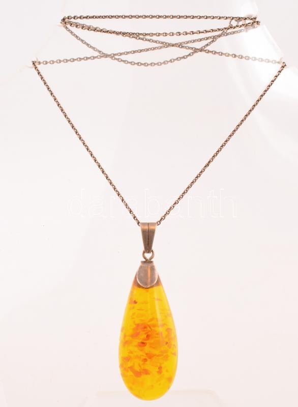 Beschreibung: Ezüst nyaklánc, borostyán függővel 5 cm