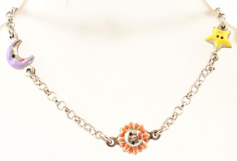 Beschreibung: Ezüst(Ag) zománcozott csillag-Hold-Nap karkötő, jelzett, h: 17,5 cm, bruttó: 3,7 g