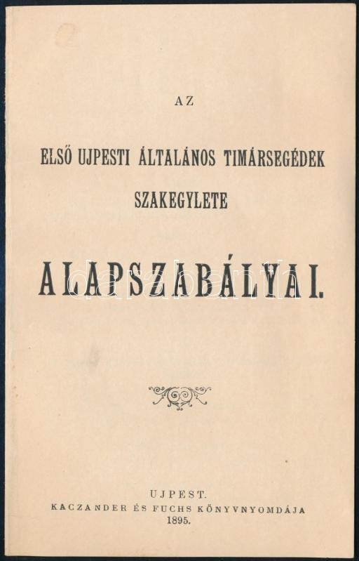 1895 Az Ujpesti Általános Tímársegédek szakegyletének alapszabályai 11... https://www.darabanth.com/de/358-Fernauktion/358.0/Kunst-Dokumente-andere-Sammelgebiete/Drucksachen~500034/1895-Az-Ujpesti-Altalanos-Timarsegedek-szakegyletenek-alapszabalyai-11-p~II2054900