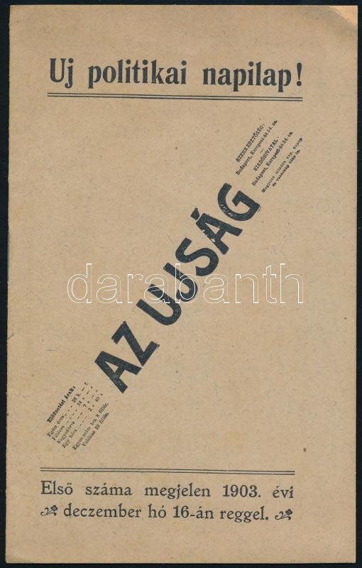 1903 Az Újság c, új napilap reklámfüzete 8p. 16 cm https://www.darabanth.com/de/358-Fernauktion/358.0/Kunst-Dokumente-andere-Sammelgebiete/Drucksachen~500034/1903-Az-Ujsag-c-uj-napilap-reklamfuzete-8p-16-cm~II2057296
