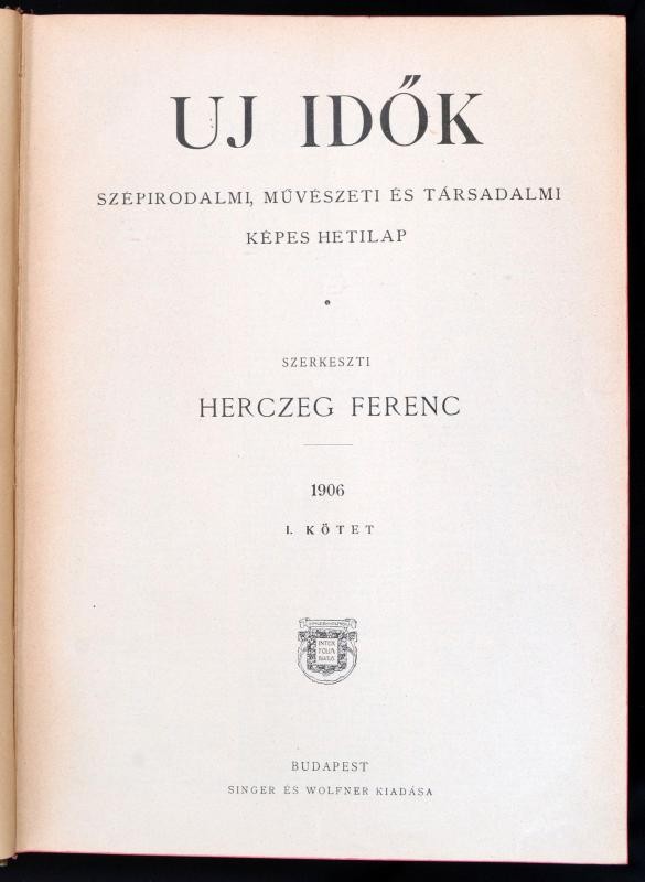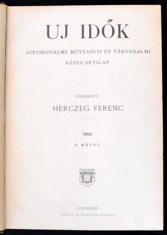 1906 Új idők képes hetilap teljes évfolyam két kötetben, egészvászon k... https://www.darabanth.com/de/358-Fernauktion/358.0/Kunst-Dokumente-andere-Sammelgebiete/Drucksachen~500034/1906-Uj-idok-kepes-hetilap-teljes-evfolyam-ket-kotetben-egeszvaszon-kotesben~II2060973