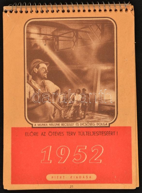 1952 Előre az ötéves terv teljesítéséért asztali naptár. 10x13 cm https://www.darabanth.com/de/358-Fernauktion/358.0/Kunst-Dokumente-andere-Sammelgebiete/Drucksachen~500034/1952-Elore-az-oteves-terv-teljesiteseert-asztali-naptar-10x13-cm~II2055574