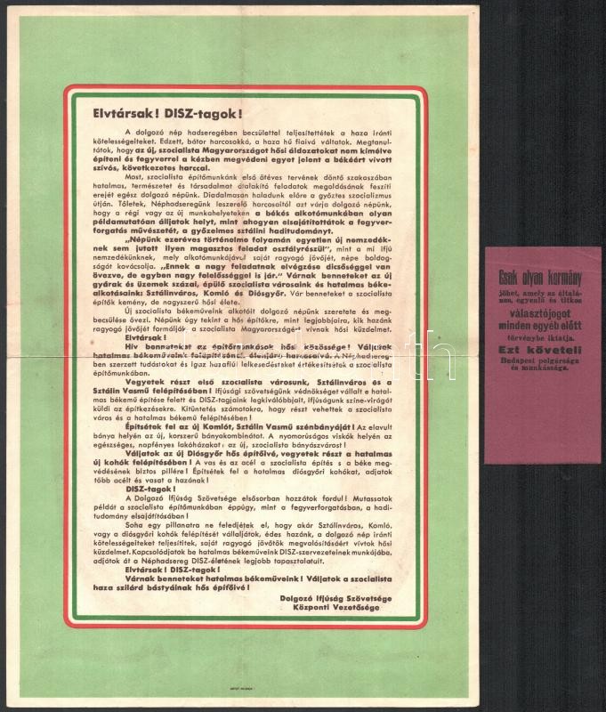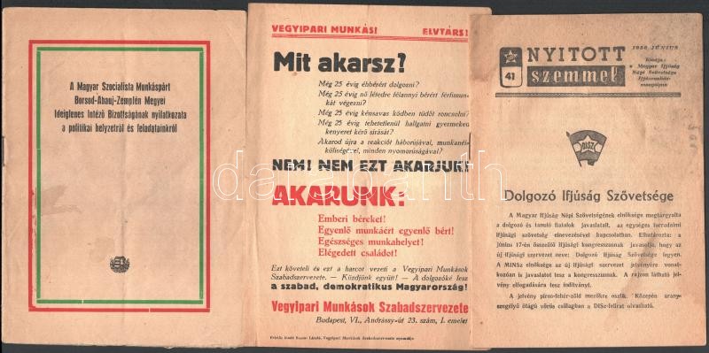 cca 1950 Vegyes politikai nyomtatvány tétel (Vegyipari Munkások Szaksz... https://www.darabanth.com/de/358-Fernauktion/358.0/Kunst-Dokumente-andere-Sammelgebiete/Drucksachen~500034/cca-1950-Vegyes-politikai-nyomtatvany-tetel-Vegyipari-Munkasok-Szakszervezete-Magyar-Szocialist~II2058170