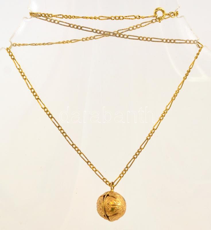 Beschreibung: Aranyozott áttört gömb függő aranyozott láncon.