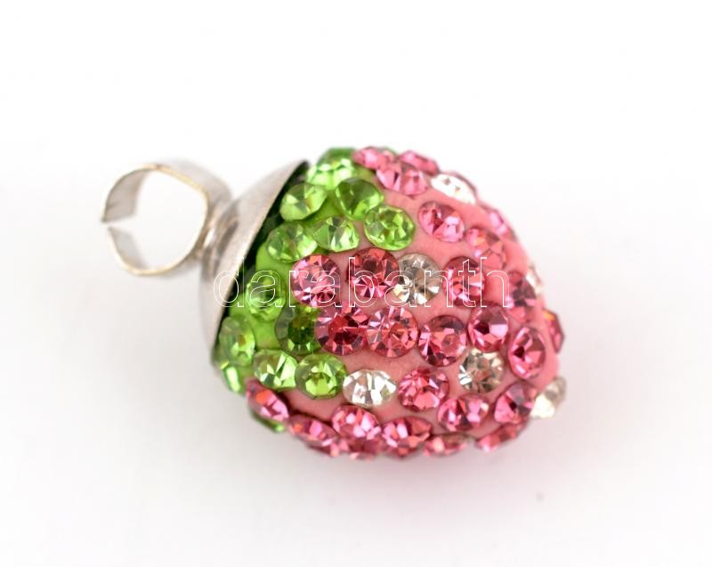 Beschreibung: Eper alakú pink strasszos medál, h: 2 cm