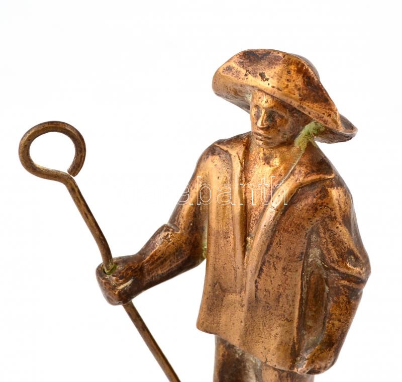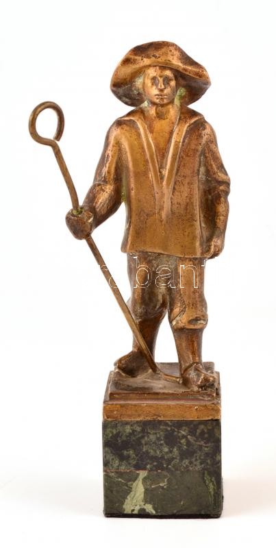 Jelzés nélkül: Öntőmunkás. Bronz, mészkő talapzaton, a talapzaton apró lepattanással, talapzattal m: 20 cm.