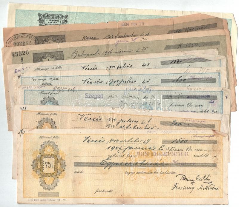 Beschreibung: 1870-1950. 43db-os vegyes magyar váltó tétel, sok kitöltött darab bélyegekkel és bélyegzéssel, érvénytelenített példányok is T:III-IV szakadás,ly.