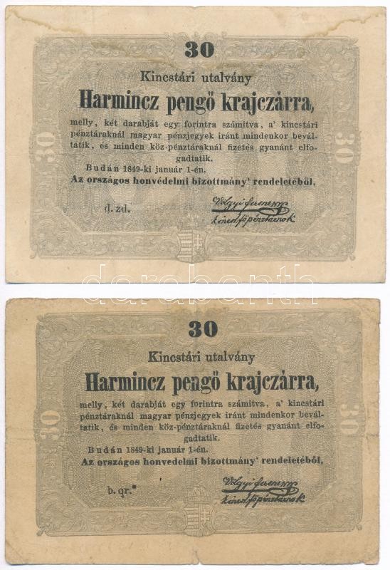 Beschreibung: 1849. 30kr "Kossuth bankó" (2x) egyik csillagos sorozatszámmal T:III,III-